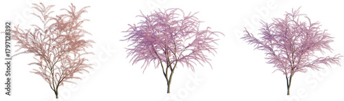 © DH Tree Stock, Naklejka premium Tamarix gallica tree, front view, cutout, transparent background, isolate, Beautiful pink blossom trees ready for spring and garden design projects