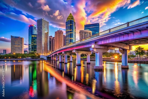 © Danicha, Naklejka premium Tampa Florida Sky Bridge Aerial View: Conceptual Photography, Stunning Cityscape, Modern Architecture, Bridge Design