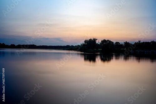 © RebeccaDunnLevert, Fototapeta premium Tampier Lake near Chicago on a summer evening at dusk