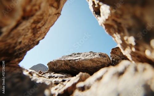 © creatfive, Fototapeta premium Tan and Brown Rocks Framing Blue Sky View