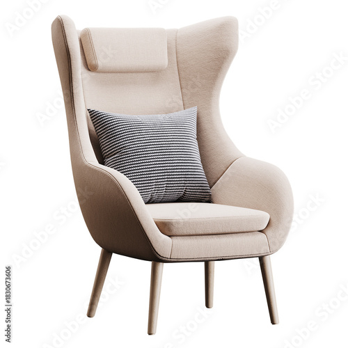 Naklejka premium Tan and white chair with a blue and white pillow on it