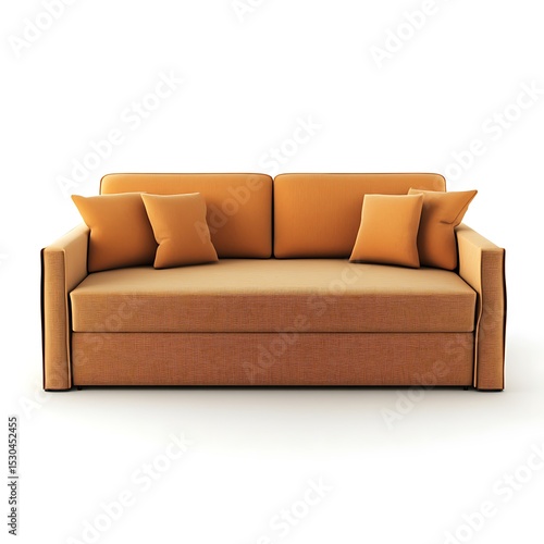 © Atthapon, Obraz premium Tan couch with orange pillows and a brown patterned fabric