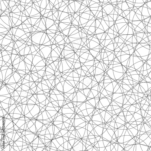 Fototapeta premium Tangled background of thin black outline overlapping circles