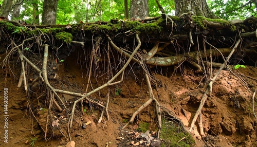 Obraz premium Tangled Roots Above Forest Soil