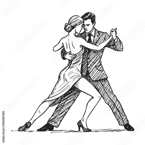 Fototapeta premium Tango dancers pose expressing passion in a vintage illustration