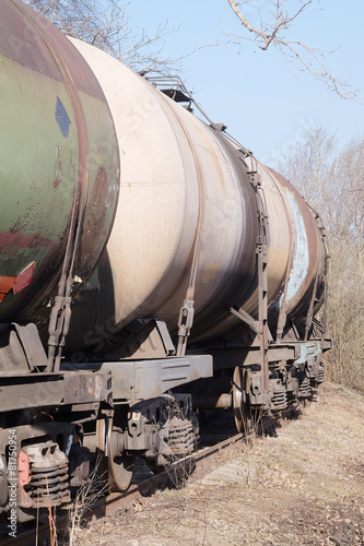 © Dmitry Vereshchagin, Naklejka premium Tanks with fuel being transported by rail