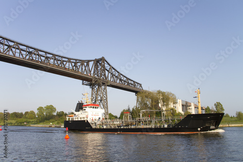 © Ralf Gosch, Fototapeta premium Tankschiff auf dem Nord-Ostsee-Kanal bei Rendsburg