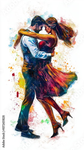 Fototapeta premium Tanzendes Paar in farbenfrohem, künstlerischem Hintergrund