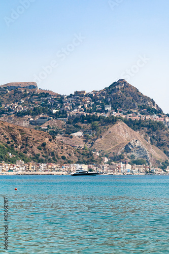 Obraz premium Taormina city on cape and in Giardini Naxos town