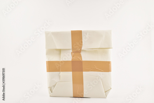 © picsmart, Obraz premium Taped packet isolated on white background, secure parcel