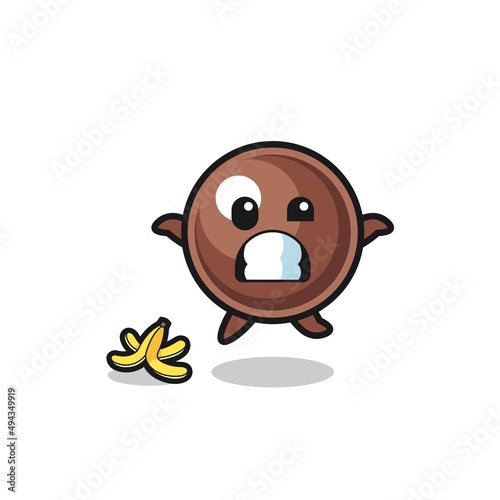 Obraz premium tapioca pearl cartoon is slip on a banana peel