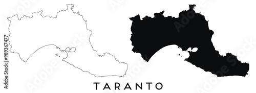 © Alex, Obraz premium Taranto map outline and black silhouette vector