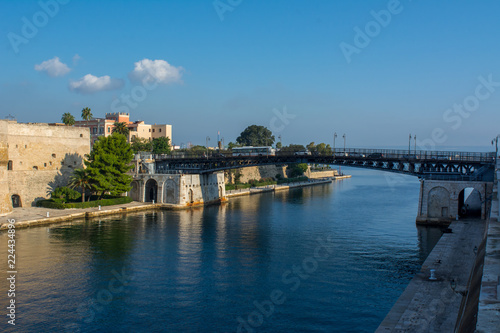 Fototapeta premium Taranto Swing Bridge on the Canal Boat Separing the Little and the Big Sea