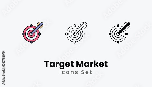 Obraz premium Target Market Icons thin line and glyph vector icon stock illustration