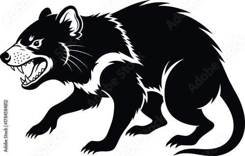 © PM Studeo, Obraz premium Tasmanian devil vector illustration black and white animal predator art eps silhouette