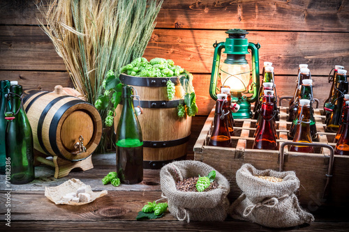 Fototapeta premium Tasting home-brewed beer in the cellar