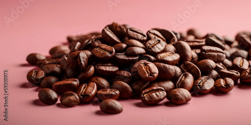 © Echelon IMG, Naklejka premium tasty and fresh roasted coffee beans, isolated on a light pink background, close up, created with generative ai