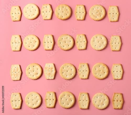 © Pixel-Shot, Obraz premium Tasty different crackers on color background