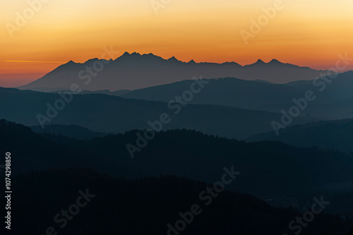 © Maciej G. Szling, Fototapeta premium Tatry widok z Malnika muszyna, Zachód słońca