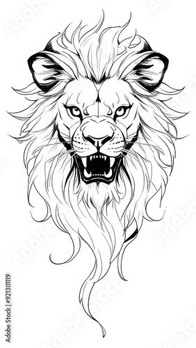 © Vitalii Zikun, Obraz premium tattoo drawing with a fierce lion face