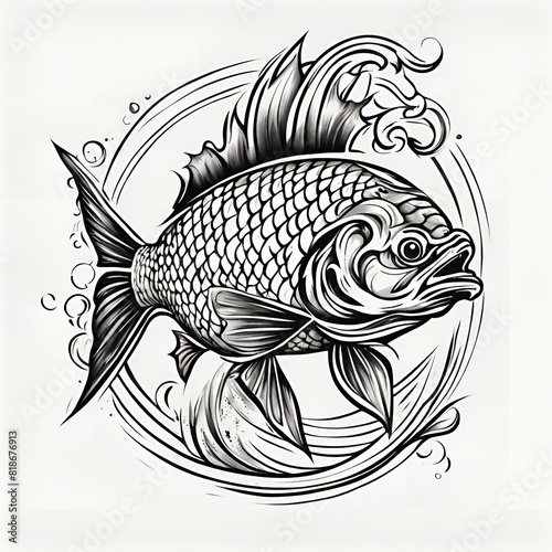 Fototapeta premium tattoo old school fish black and white, Generative AI