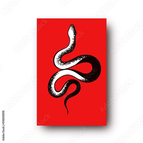 Fototapeta premium Tattoo snake on a red background. Traditional black dot style ink. Traditional Tattoo Old School Tattooing Style Ink. Snake silhouette illustration.