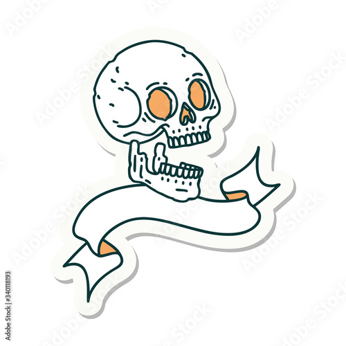 © lineartestpilot, Fototapeta premium tattoo sticker with banner of a skull
