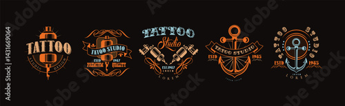 Obraz premium Tattoo Studio Logo and Label Design Template Vector Set