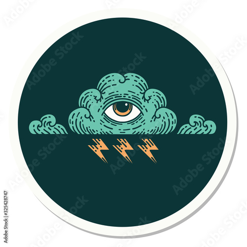 Obraz premium tattoo style sticker of an all seeing eye cloud