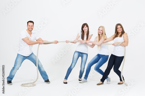 © Christian Schwier, Naklejka premium Tauziehen in der Gruppe