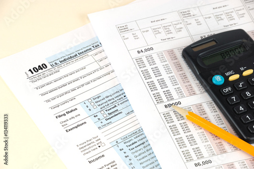 © nd700, Obraz premium tax calculation form with calculator and pencil on the form