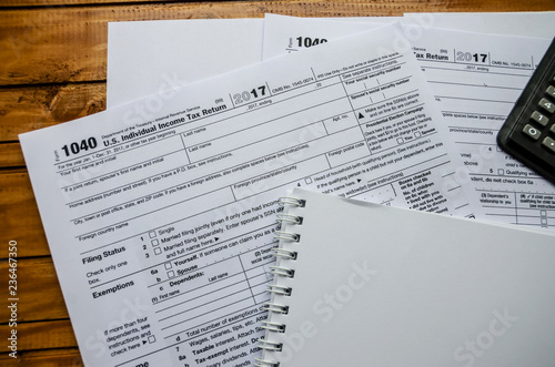 © Tania, Fototapeta premium 1040 tax form, calculator and notepad