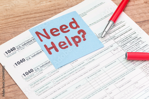 © volodymyrv, Fototapeta premium 1040 tax form with sticker - need help