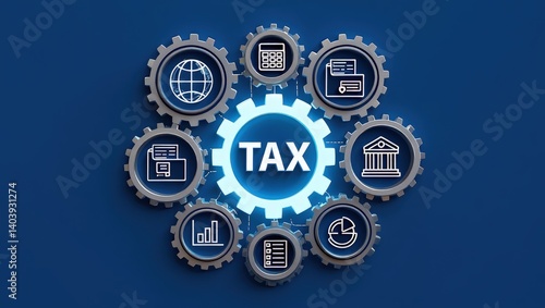 Fototapeta premium Tax Management Concept. Businessman interact with digital gears representing...