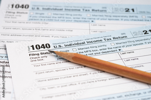 © amazing studio, Obraz premium Tax Return form 1040 with pencil, U.S. Individual Income.