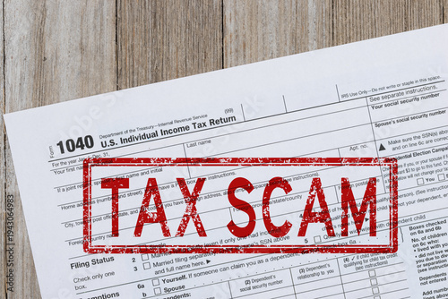 Fototapeta premium Tax scam warning on US 1040 tax form