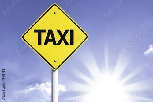 © gustavofrazao, Fototapeta premium Taxi road sign with sun background