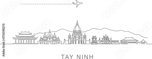 Fototapeta premium Tay Ninh Vietnam Skyline Travel Airplane Line Art
