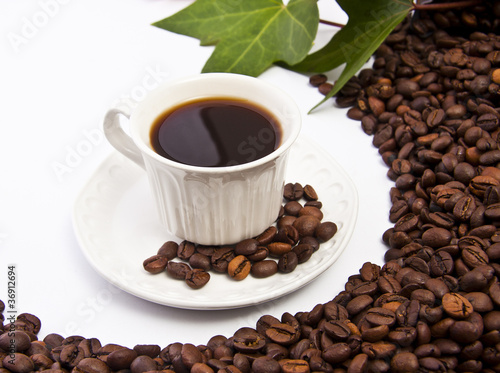 © carballo, Fototapeta premium taza de café negro con granos de café tostado