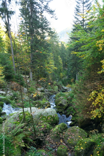 © khunta, Obraz premium TBaden-Wurttemberg, Germany-October 12, 2018: Triberger Waterfall, the highest waterfall in Germany, in Black Forest