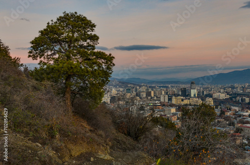 Naklejka premium Tbilisi at dawn panoramic view from Mtatsminda Mountain trail