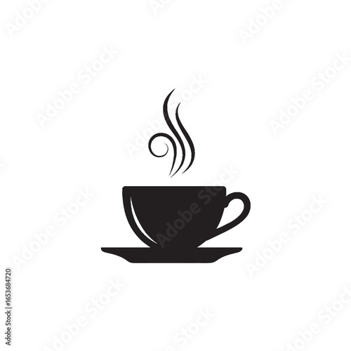 © Riasat, Obraz premium Tea Cup with Steam Swirl Silhouette Vector for Beverage, Relaxation, and Café Concepts