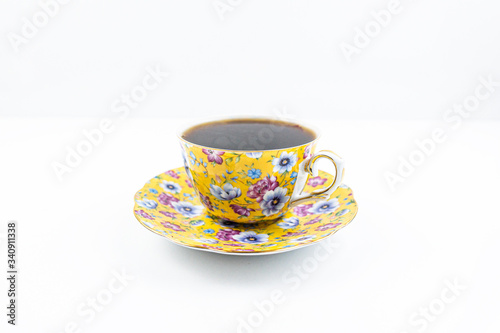 Obraz premium Tea cup with tea inside on the white table
