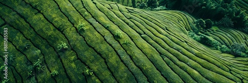 © Palung, Fototapeta premium Tea field green plantation agriculture background top leaf farm landscape pattern drone.