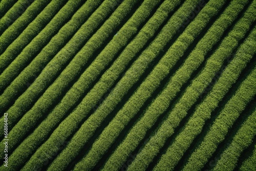 © valentina, Fototapeta premium Tea field plantation background. photo shot from a drone to fields with tea