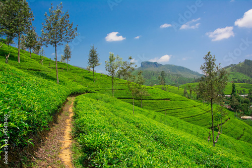 © eranda, Obraz premium Tea fields in the mountain area in Nuwara Eliya, Sri Lanka