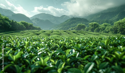 Fototapeta premium tea fields with mountains in the background
