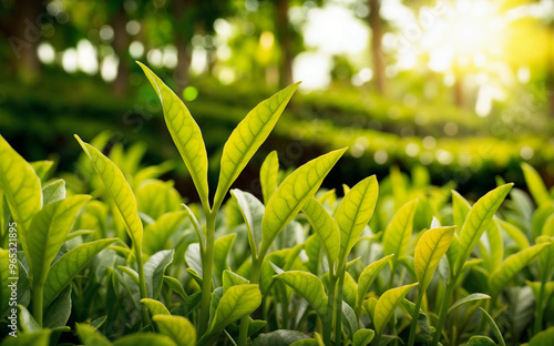 Obraz premium Tea leaves on tea garden