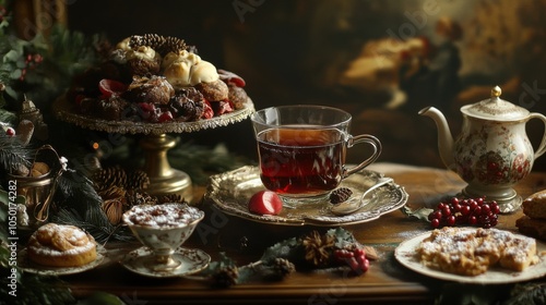 © kachanovski, Naklejka premium Tea paired with holiday treats