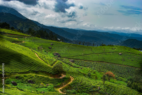 Fototapeta premium Tea Plantation in Munnar, Kerala, India. Munnar is one of the most popular tourist destinations in India.